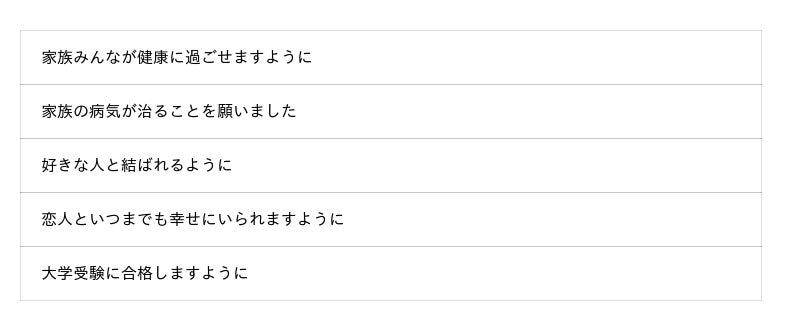 他には、恋愛や学業に関する願い事が見られ、ポジティブな回答ばかりでした。