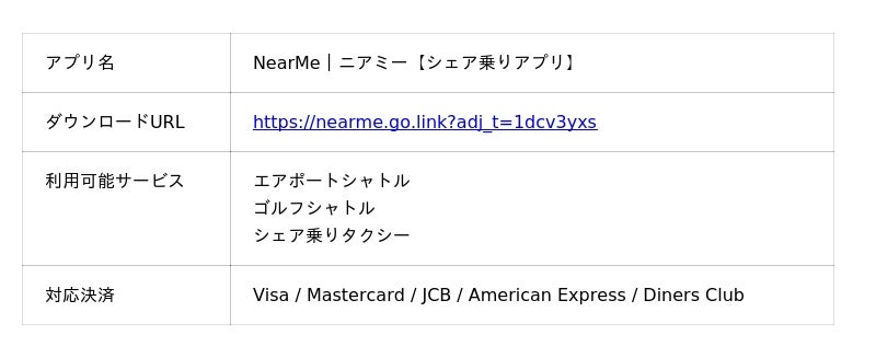 「NearMe」は、独自のAIを活用した最適なルーティングで、出発地から目的地までの移動をドアツードアで結ぶタクシーのシェアサービスです。その中でも、空港とその周辺の都市部を結ぶ空港送迎型の『エアポートシャトル』は、2019年8月のサービス開始から、 多くの方にご利用いただき、累計予約人数100万人※1を達成しました。現在は、全国16の空港※2(羽田空港、成田空港、伊丹空港、関西空港、新千歳空港、中部国際空港、福岡空港、那覇空港、旭川空港、帯広空港、青森空港、仙台空港、静岡空港、南紀白浜空港、徳島空港、北九州空港)と、空港周辺の都市部でご利用いただくことができます。対象エリアであれば、出発地となるご自宅から空港、そして空港から最終目的地まで一気通貫でつながるため、公共交通機関の乗り換えがなくなるなど、ストレスフリーな移動体験を提供することができます。また、貸切送迎サービスや、東京都と千葉県全域のゴルフ場と東京都23区内を結ぶゴルフシャトルなど、シチュエーションに応じて様々な移動のニーズに対応するための各種サービスを展開しています。