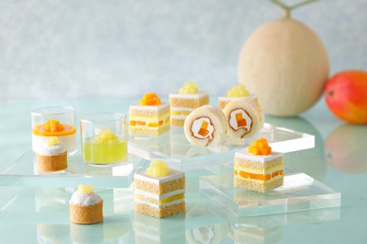 当プランではアウトドアプールとセットで、現在開催中の肉・寿司・スイーツを存分に味わえる“贅沢×よくばりビュッフェ”「SATSUKI スイーツ&デリシャスビュッフェ」もお愉しみいただけます。ホテルニューオータニが誇る“スーパースイーツ”シリーズの代表格『スーパーメロンショートケーキ』はもちろん、今が旬の濃厚なマンゴーをふんだんに使用した期間限定スイーツもラインアップ。