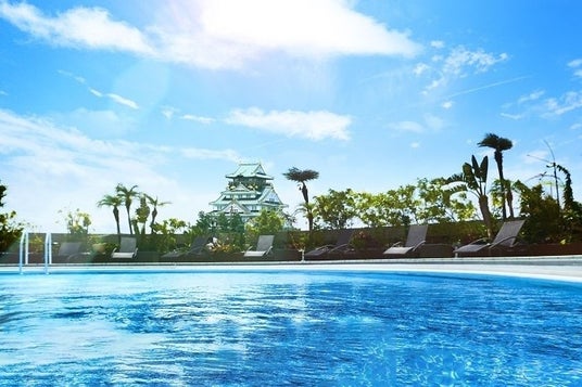 ホテルニューオータニ大阪のアウトドアプールは市内随一の開放的なロケーションを誇る、夏の人気レジャースポット。大阪城公園の豊かな緑や南国調の植栽が生み出す涼やかな“リゾート”と、大阪ビジネスパークの“都会”が見事に融合した唯一無二のハイブリッドプールです。