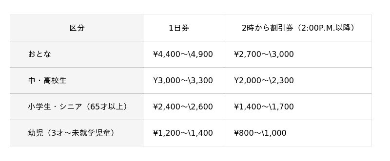 ※大磯プリンスホテルご宿泊のお客さまで、大磯ロングビーチ入場券付きプラン以外でご宿泊のお客さまは、各正規料金の半額でご利用いただけます。