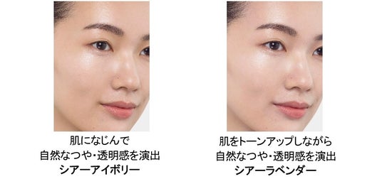 色調は肌になじんで自然なつや・透明感を演出する「シアーアイボリー」と、肌をトーンアップしながら自然なつや・透明感を演出する「シアーラベンダー」の2色を展開します。