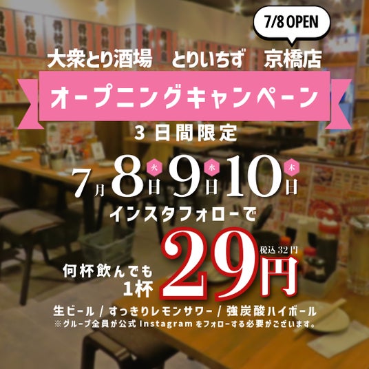 【大衆とり酒場 とりいちず 京橋店】が2025年7月8日(火)、駅近の好立地にグランドオープンいたします。
