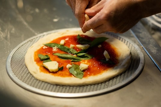 ピザはご注文後に1枚1枚生地をのばして店内の石窯で焼き上げます