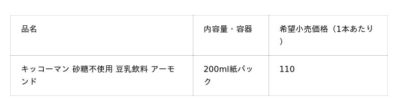 キッコーマン豆乳「砂糖不使用」シリーズの新商品!「キッコーマン 砂糖不使用 豆乳飲料 アーモンド」新発売!