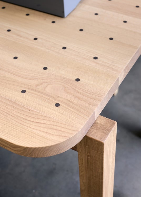 本ブランドの開発過程では、1つのアイディアが常に複数のアイテムへと展開されてきました。例えば、「Glass CMPT Table」は、通常のコーヒーテーブルとしての機能はもちろん、天板下に4台の「Apple Box」がぴったりと収まるように設計されており、コーヒーテーブルとしての用途と収納の機能を両立します。ニューヨークの限られた居住空間を前提とした、スペースを有効に活用できる機能性あふれるデザインを、当社の精緻なモノづくりの技術によって具現化しました。