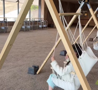 雨でも安心!卓球台やトランポリン、ブランコなど子どもたちが自由に遊べる室内エリアも充実。キャンプ場宿泊者は無料でご利用頂けます。日帰りの方もキャンプ場入山料600円でご利用いただけます。