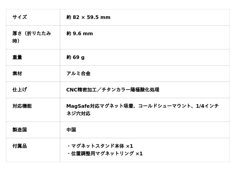 【iPhone MagSafe・Android両対応/頑丈なアルミ合金製/軽量69g/VLOGに】