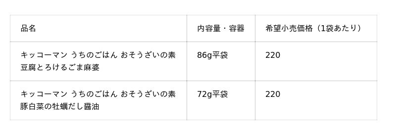 キッコーマン食品株式会社は、8月4日に、「キッコーマン うちのごはん おそうざいの素」シリーズの新アイテム「豆腐とろけるごま麻婆」と「豚白菜の牡蠣だし醤油」を全国で新発売します。