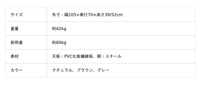 製品は、幅105cm、奥行き70cmと広々とした天板が特長です。コップや雑誌、ノートパソコンを置いてもゆとりのあるサイズ感で、くつろぎの時間から軽作業まで、幅広いシーンで快適にお使いいただけます。