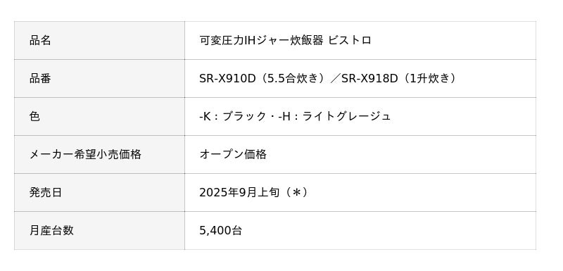 ▼[プレスリリース]可変圧力IHジャー炊飯器 X9Dシリーズを発売(2025年7月16日)