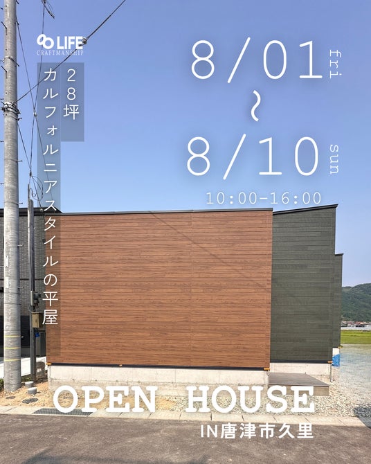 佐賀・唐津で注文住宅を手がける株式会社LIFEHOUSEは、2025年8月1日(金)から8月10日(日)まで、佐賀県唐津市久里にて20代共働き夫婦が建てた「28坪の平屋住宅」の完成見学会を完全予約制で開催します。