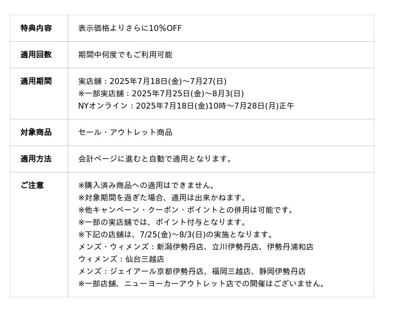 【7/18(金)10:00より】NYオンラインにて『FINAL SALE 10%OFF』開催!
