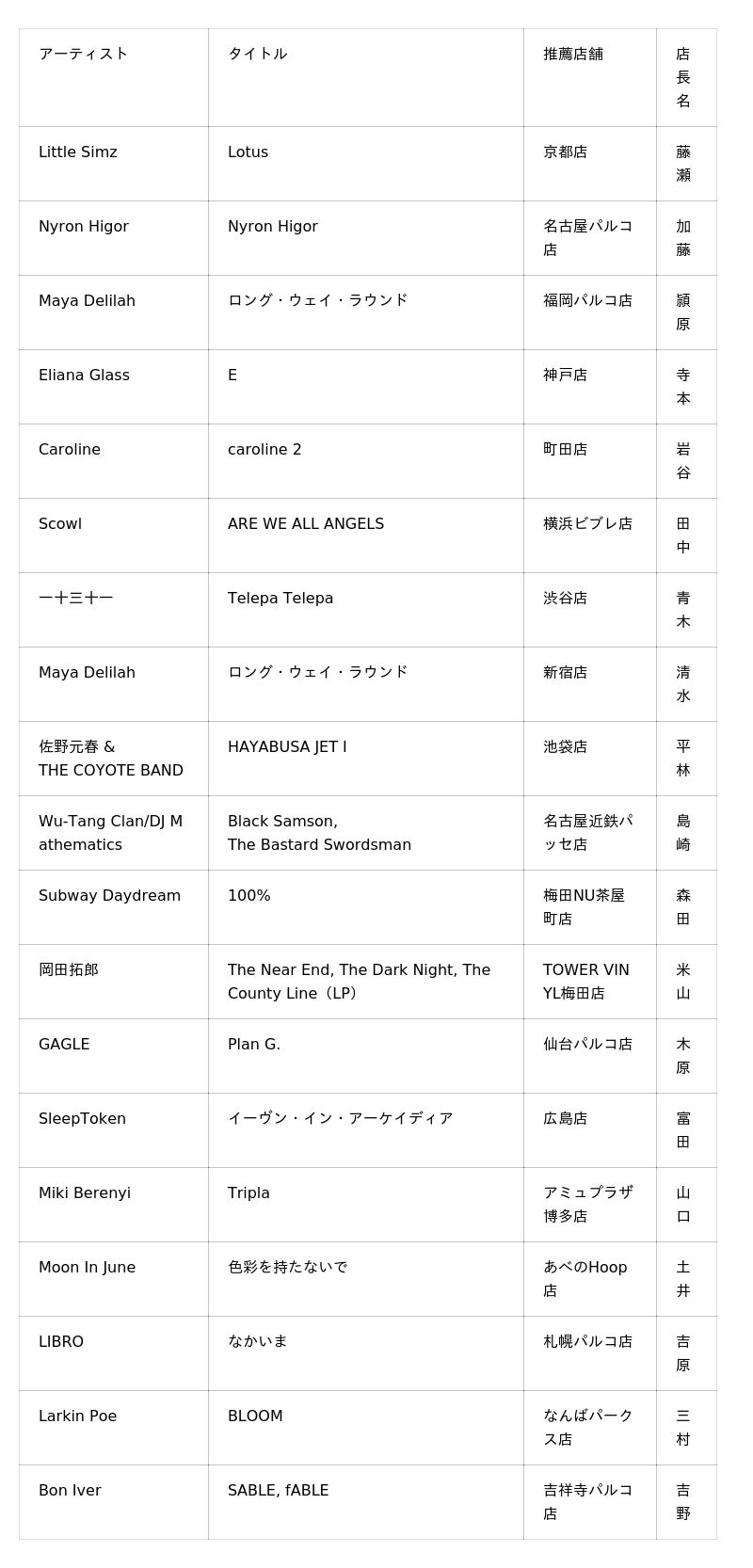 タワーレコードは、音楽大好きな店長がおすすめ1枚を紹介する企画「マスターズチョイス」のなかから、全国各地の店長によって2025年上半期のベスト作品を厳選。それらの作品を7月18日(金)から主要店舗や特集ページでおすすめしていきます。