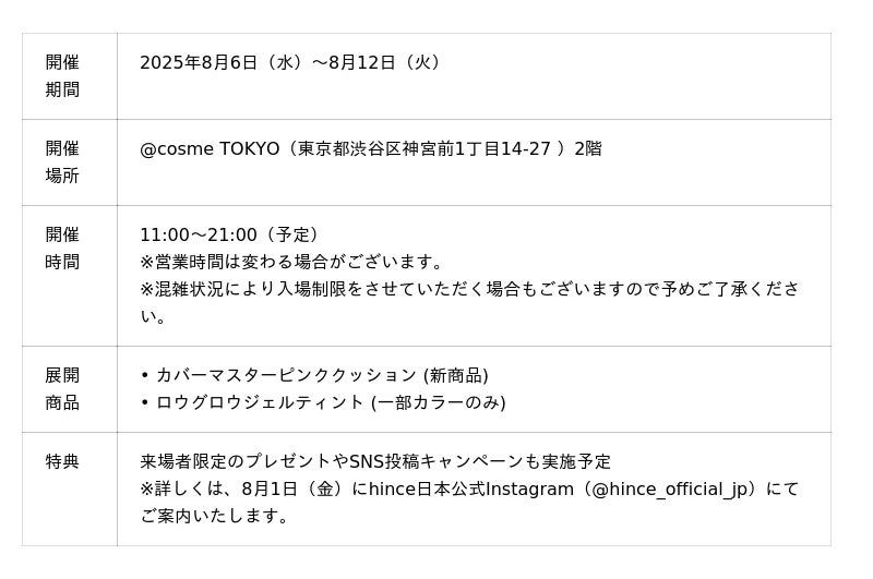 ※特典内容の詳細は、hince日本公式SNSをご確認ください。