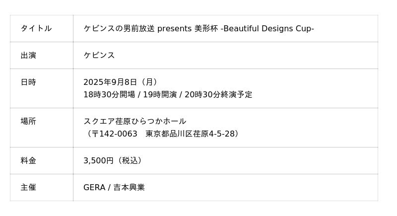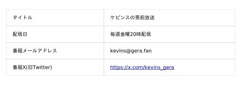 プロシューマー支援事業を展開する株式会社ファンコミュニケーションズ(本社:東京都渋谷区、代表取締役社長:二宮幸司 東京証券取引所プライム市場:2461)が運営する国内最大級のお笑いラジオアプリ「GERA(ゲラ)」は、現在配信中の「ケビンスの男前放送」の番組イベントを9月8日(月)19時に開催いたします。