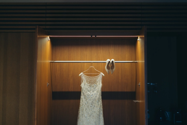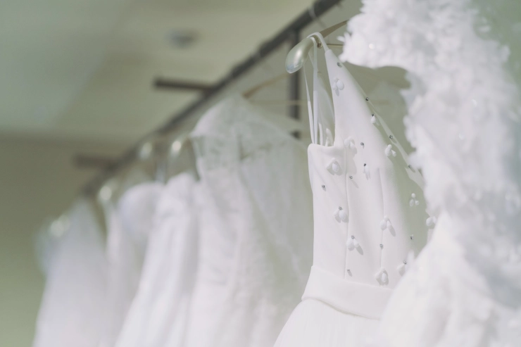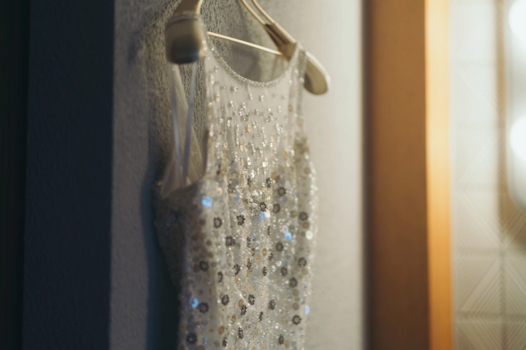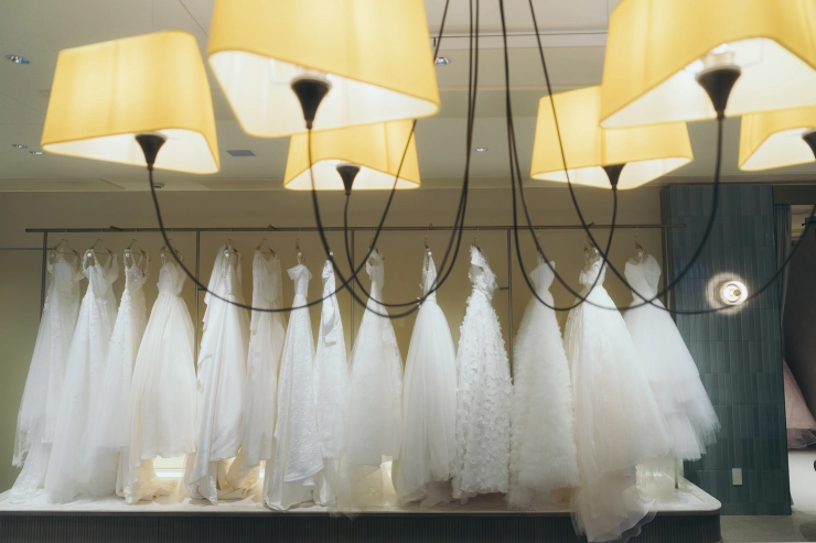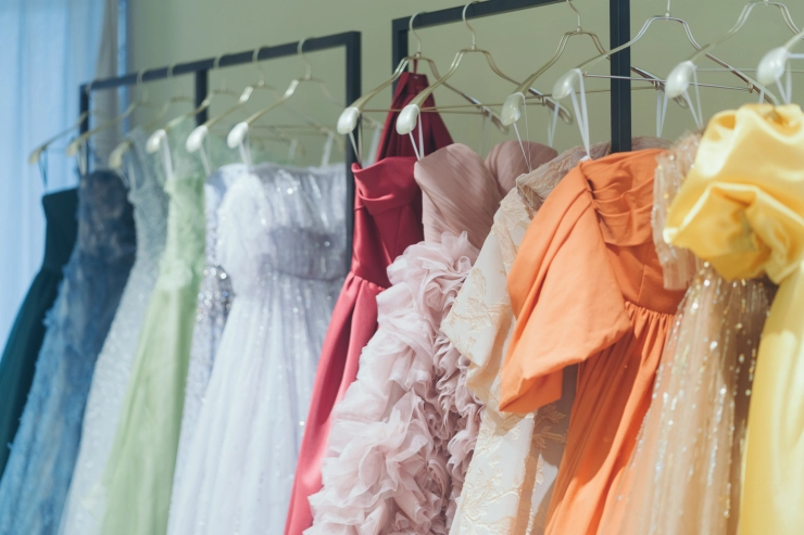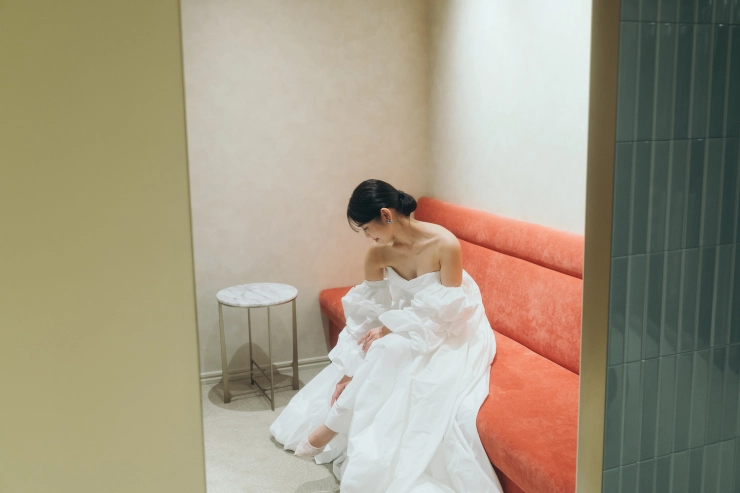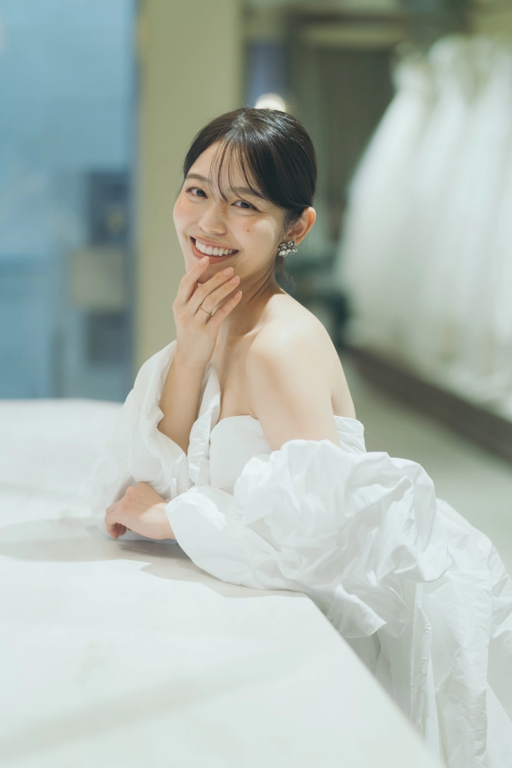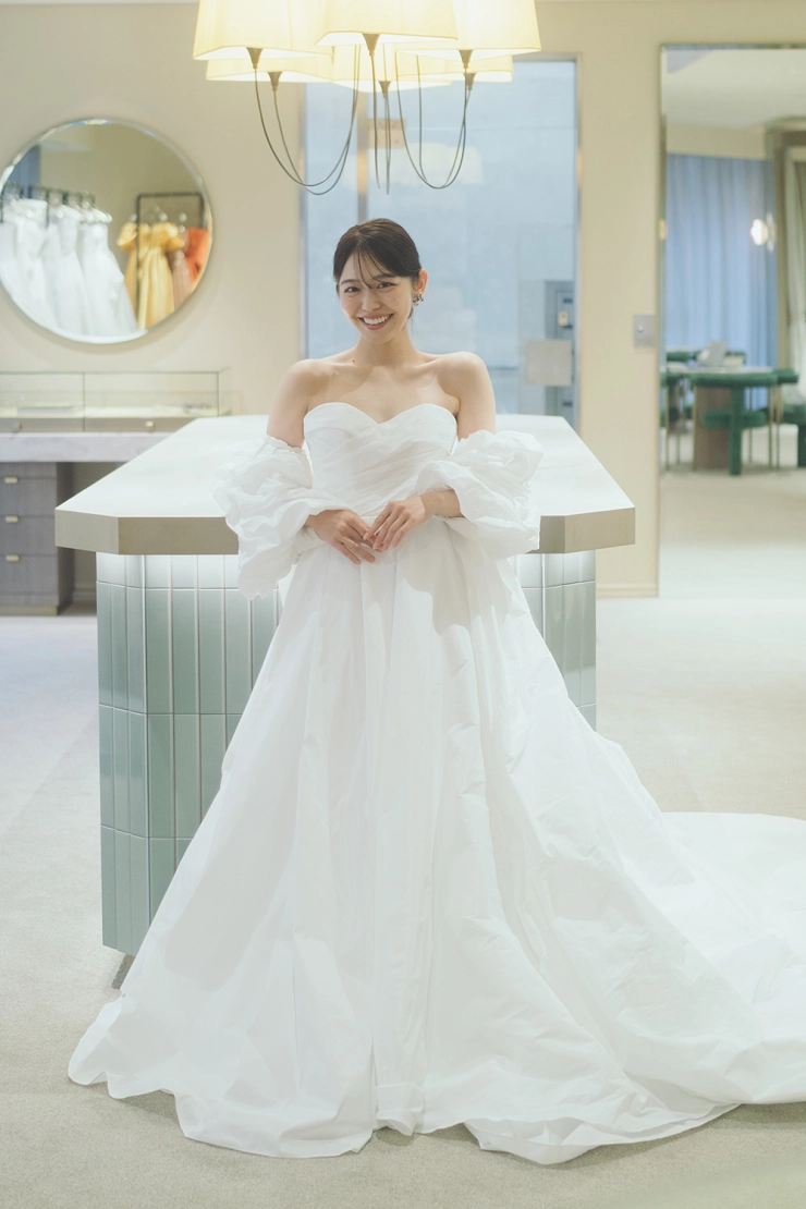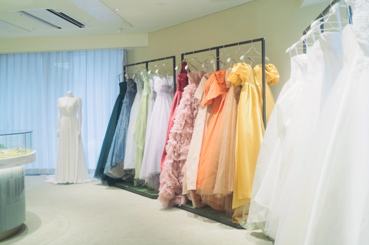 オンラインで選んだドレスは、撮影前日に店舗で最終フィッティング。1〜2時間ほどでサイズ感やシルエットを丁寧にチェックし、当日の着心地や動きやすさをしっかり確認。