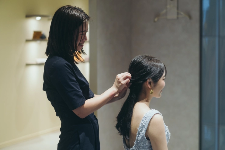 衣裳の受取をはじめ、当日のヘアメイクなどもすべてホテル内で完結するため、移動のストレスが一切なく、撮影当日も余裕をもって過ごせるのが最大の魅力。