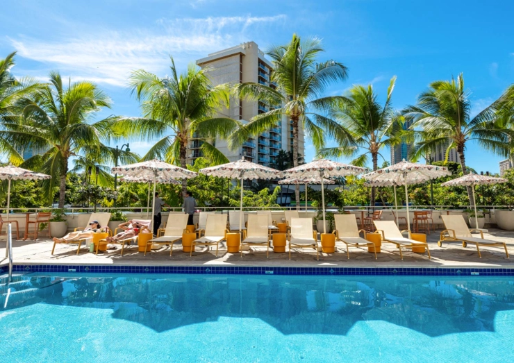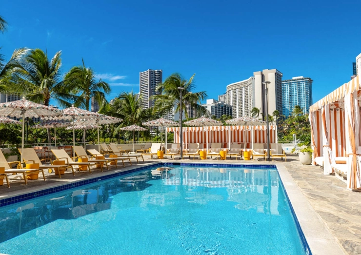 さらに注目は、22:00まで楽しめるプール!ポップなパラソルやラウンジチェアが並ぶプールサイドは、どこを切り取ってもおしゃれ♡ミーハーガールのハワイ旅をさらに楽しいものにしてくれるホテルです。