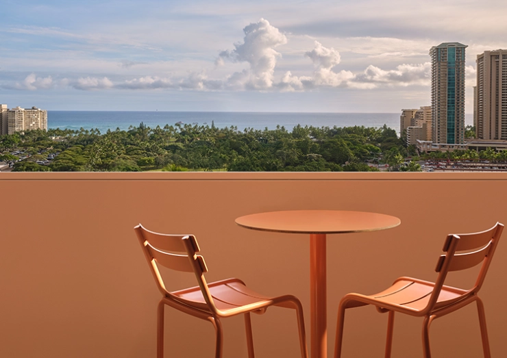 そして「オーシャンビュー1ベッドルームスイート」のお部屋には、広ーいバルコニーが!ハワイの街並みや海を一望できるので朝も夜も景色が最高。ここでゆっくりくつつろいだり、晩酌するだけで、心が生き返りそう♡