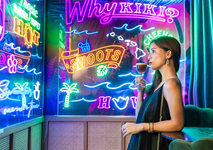 おしゃれ&大人な雰囲気で注目を集めているローマー ハウス ワイキキ。その中に、チャイナタウンで人気だったバー、「The Lei Stand Waikīkī」がワイキキにオープン♡店内に一歩足を踏み入れると、ネオンがきらきら輝くムーディーな空間が広がっていて、思わずうっとり。どこを切り取っても絵になるおしゃれな内装だから、写真を撮る手が止まらないこと確実です!