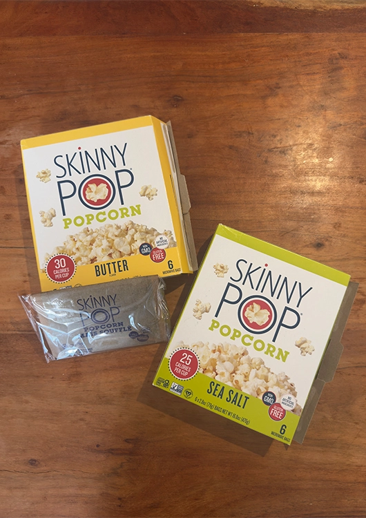 写真1枚目・おうちで電子レンジでチンするだけで簡単に出来立てポップコーンが味わえるSkinnyPop, Popcorn。しかもグルテンフリーなんです。ちょっと重いのでトランクの空きには注意して(笑)