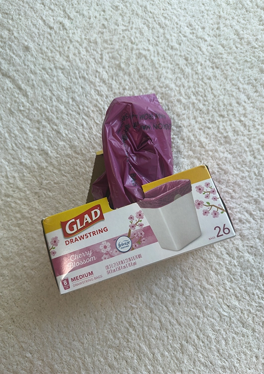 写真2枚目・アメリカではお馴染みのGLADの紐付きゴミ袋。ピンクが可愛くて、思わず購入。しかも香り付きだから、ゴミの匂いが軽減される優秀さ。私が買ったのは「チェリーブロッサム」の香りでした。GLADいろんなサイズや種類があるんですが、基本やぶれにくくて、どれを買っても失敗なし。自分のお気に入りのサイズを見つけてみて。